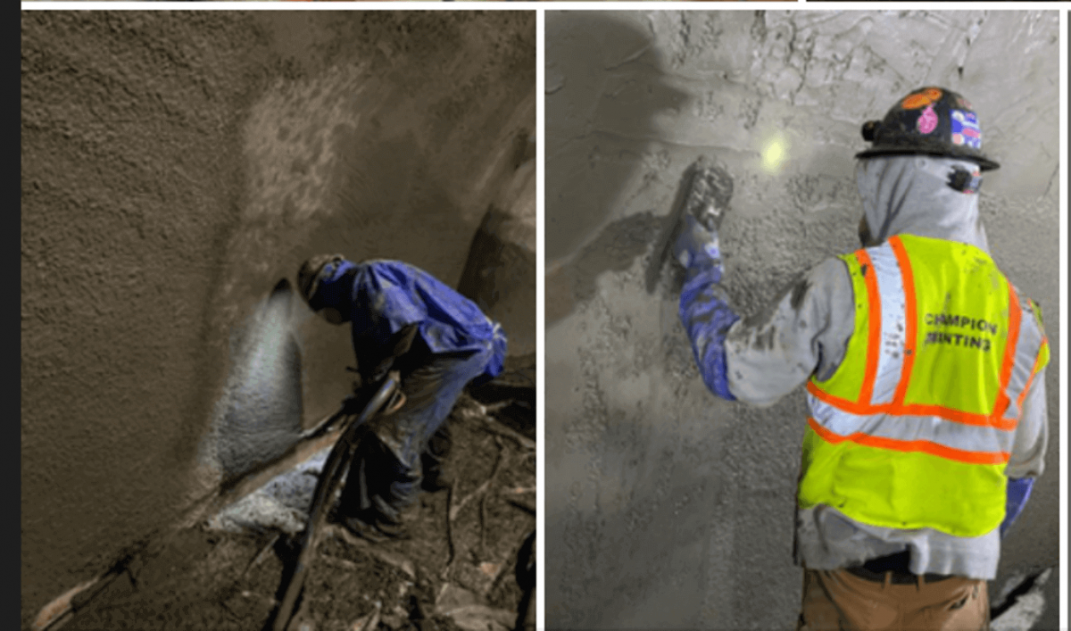 The existing concrete was then resurfaced with microsilica mortar to ensure it would provide a level substrate for subsequent liner materials.