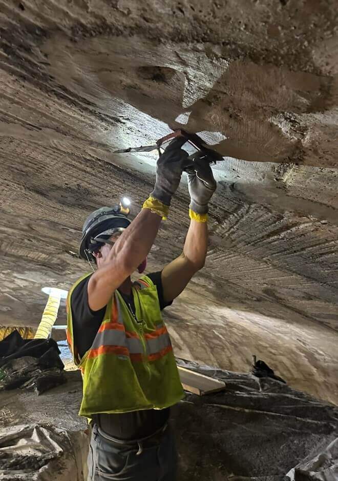 Once the Champion team removed the first PVC dome liner, it became abundantly clear that there were severely corroded and deteriorated sections of substrate which would need to be repaired. Many of these sections were more than six inches deep – a far cry from the one-inch repairs which were originally anticipated.
