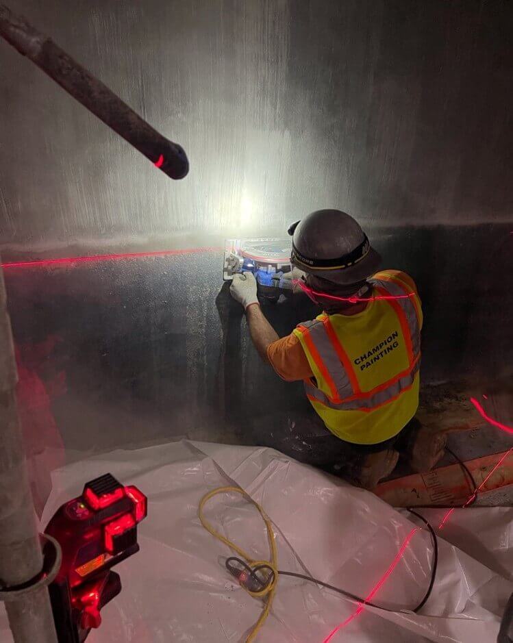 It was also discovered that the corrosion extended down the walls of the tank, beyond the original limits of the dome areas. Ultimately, Champion and the DEP worked together to begin repairs throughout all wall and dome areas of the tank, far exceeding the original scope. Ultimately, nearly every surface of the tank received repairs, and new liner materials.